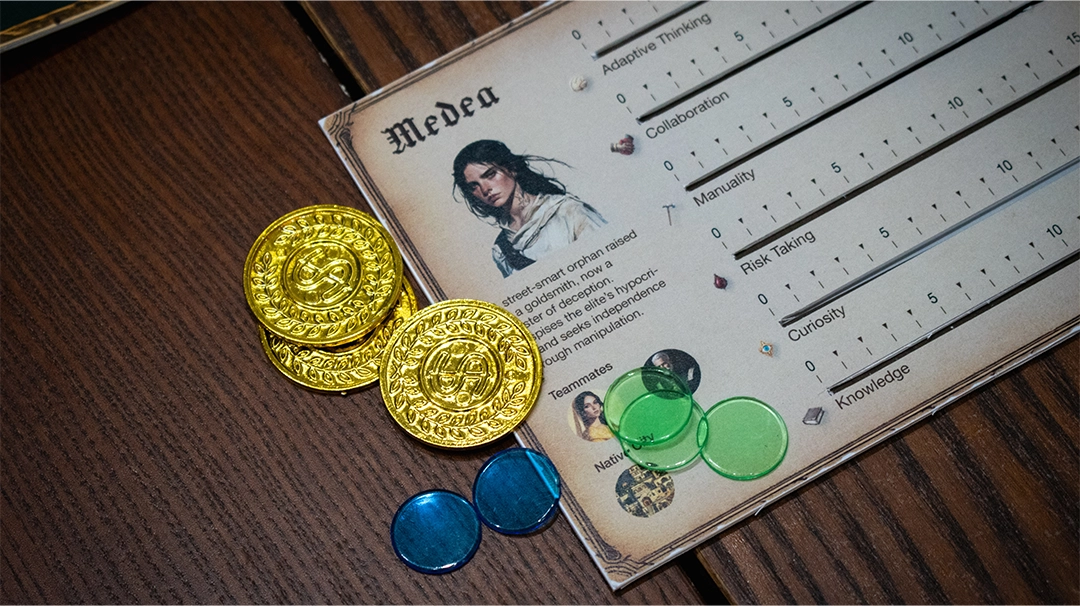 Celsia is a hybrid board game, combining physical and digital elements, that explores inequality in access to education and career opportunities. Set in a dystopian world 3000 years after a devastating war, society is divided between a powerful, educated elite and a poor class denied knowledge.